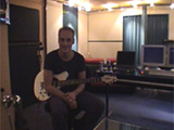 Didi Holesch beim einspielen der lapsteel-guitar zu
